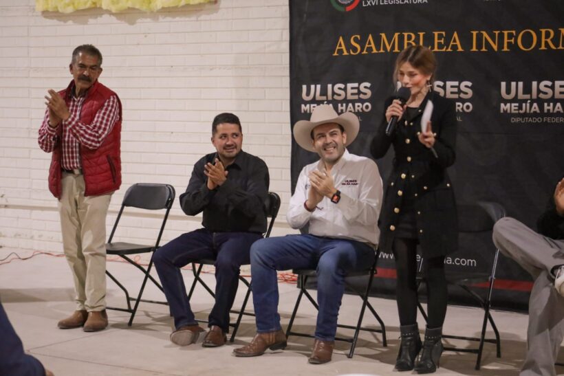 En su recorrido por el norte del estado, el diputado federal Ulises Mejía Haro visitó el municipio de Miguel Auza, donde sostuvo un encuentro con productores de frijol de la región, maestras, maestros y comerciantes. El tema central de la asamblea informativa fue la situación del campo y, de manera especial, el seguimiento a la puesta en marcha del sistema de acopio que fortalece la comercialización del grano por parte del Gobierno de México.