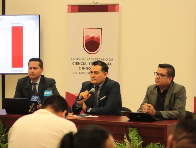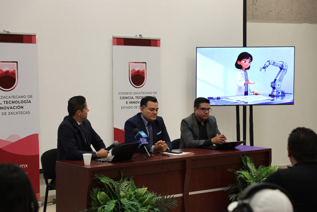 En el marco de la Agenda del Progreso, impulsada por el Gobernador David Monreal Ávila, el Director General del Cozcyt, Hamurabi Gamboa Rosales, acompañado por los directores de Difusión y Divulgación de la Ciencia y de Innovación y Desarrollo Regional, Antonio de la Cruz de Santiago y Luis Fernando Araiz Morales, respectivamente, presentó los detalles de las convocatorias.