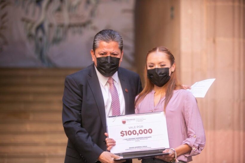 El Gobernador David Monreal Ávila entregó el Premio Estatal del Deporte Zacatecas 2021 a Ilse Ariadna Guerrero Rodarte, marchista olímpica en Tokio 2021; a Felipe Méndez Hernández, entrenador, y al promotor deportivo Jonathan Emanuel Rodríguez Macías.
