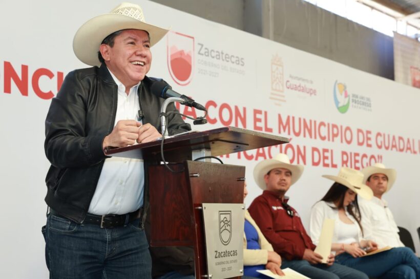 En el caso específico de Guadalupe, indicó que actualmente se apoya al 95 por ciento de los campesinos con tecnificación de riego y adelantó que se continuará ampliando la cobertura y la inversión durante 2026,  Año del Progreso.