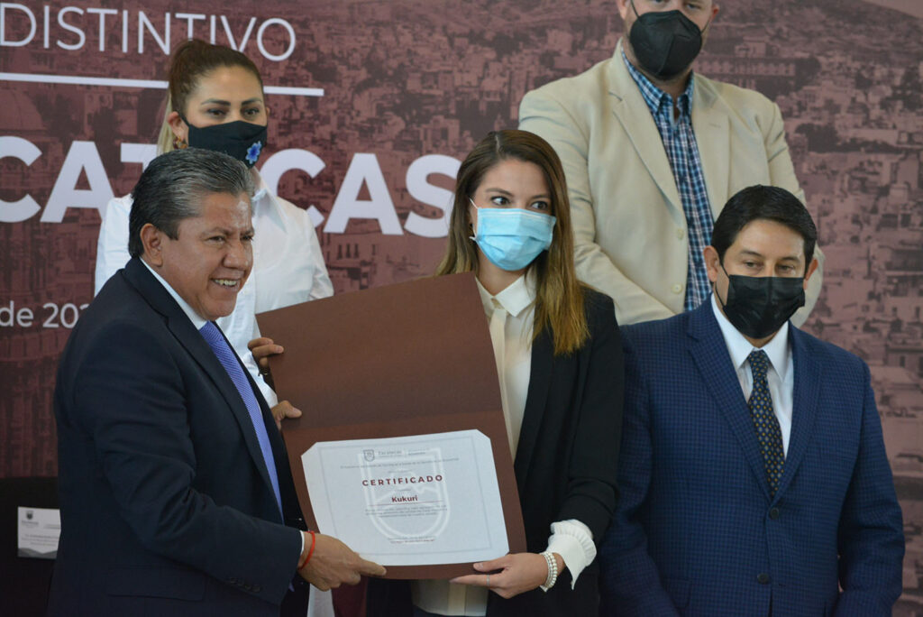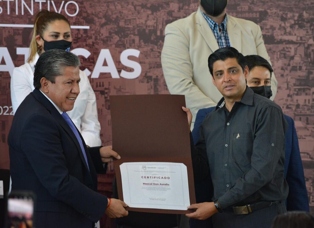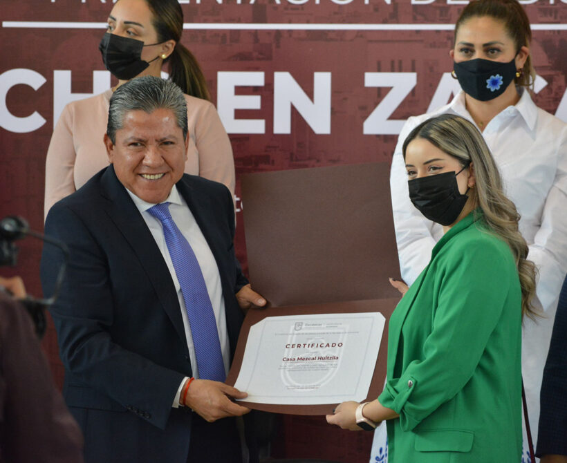 Empresas zacatecanas de vinos, mezcales, chocolates, salsas, dulces, jabones, shampos y otros, recibieron de manos del mandatario la certificación que entrega la Secretaría de Economía estatal (Sezac), como parte de las políticas de la nueva gobernanza para potenciar la economía local.