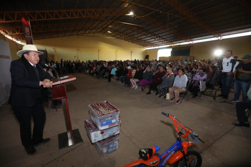 Por su parte, las familias, en su conjunto, se beneficiaron con cobijas y otro tipo de artículos de consumo básico, pues el compromiso del mandatario es con la población más vulnerable, en este caso, con aquella cuyos ingresos dependen directamente de la producción agropecuaria, especialmente de frijol, sector que se vio afectado por la falta de lluvias en la temporada primavera-verano.
