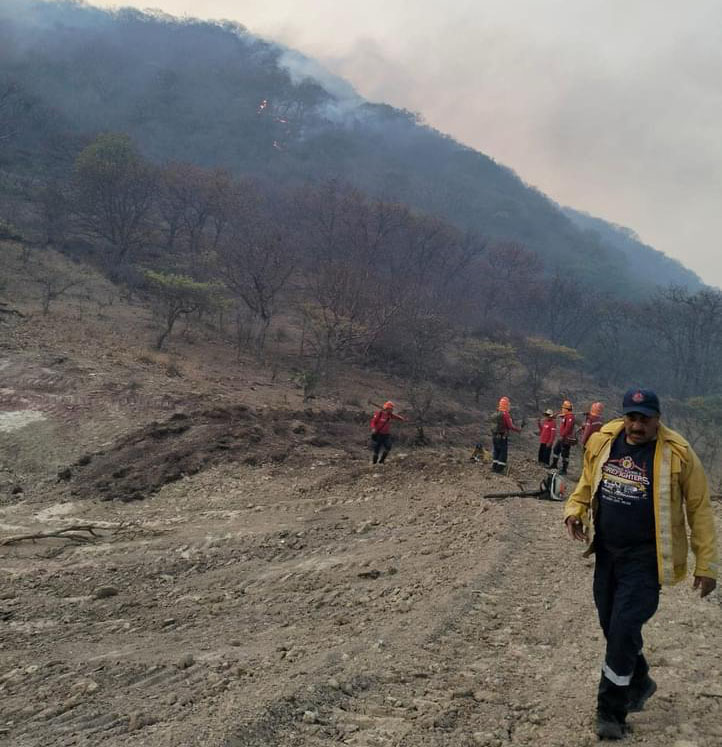 Los trabajos continúan en la zona, con el propósito de sofocar en su totalidad el fuego, que ha consumido la vegetación que incluye 90 por ciento de herbáceas y 10 por ciento de arbustivo.