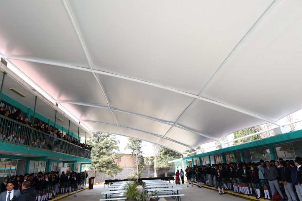 Como parte de estas acciones, se realizó la instalación de una velaria, con una inversión de 268 mil pesos, con el objetivo de brindar a las y los estudiantes un espacio digno, seguro y funcional para el desarrollo de actividades académicas, cívicas y recreativas, favoreciendo su bienestar y protección, ante las condiciones climáticas.