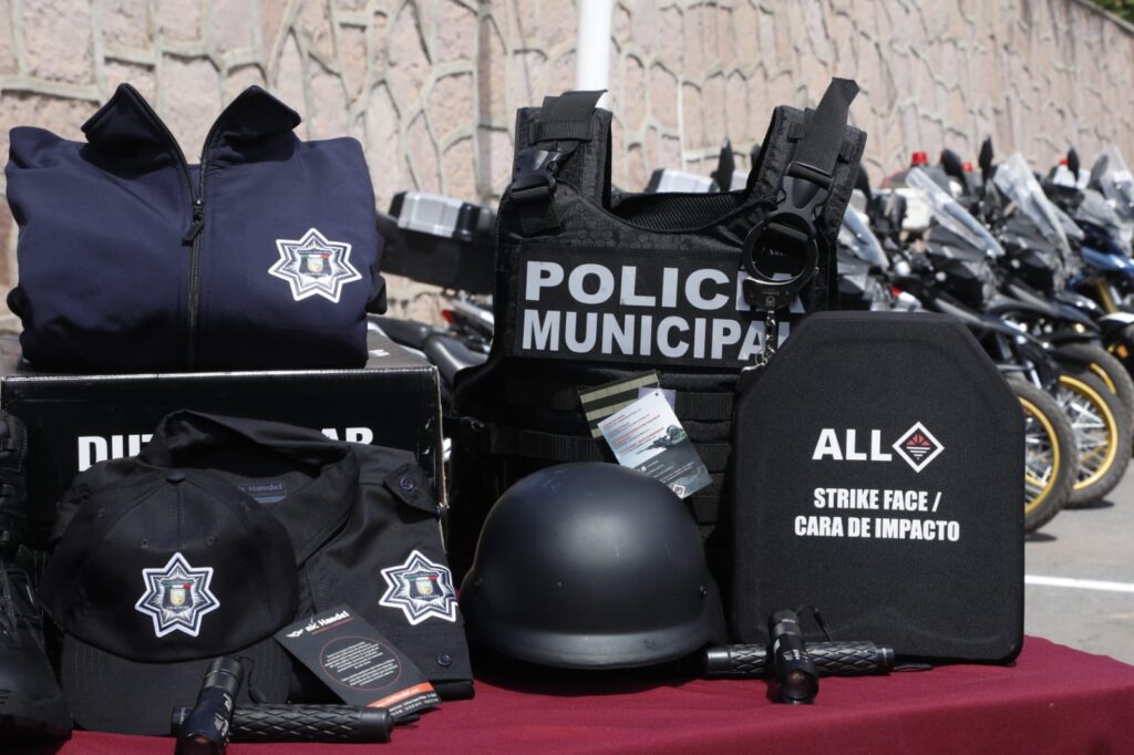 Asimismo, se erogaron 70 millones 533 mil pesos para la entrega de seis patrullas, ocho cuatrimotos, 800 uniformes, 50 chalecos y 50 cascos balísticos a Zacatecas; 10 patrullas, 100 chalecos, 100 cascos, 332 uniformes, 50 radios Matra, 6 mil cartuchos y cuatro escudos balísticos a Fresnillo; ocho patrullas, 160 cascos, cuatro escudos balísticos, dos kits de apertura, 160 goggles tácticos, una obra, 160 kits de rodilleras y coderas.