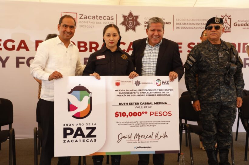 Sumado al equipamiento del Juzgado Cívico, la entrega de patrullas, armamento y uniformes, ya se firmó el convenio con el Secretariado Ejecutivo del Sistema Estatal de Seguridad Pública para que ningún policía en Guadalupe gane menos de 14 mil pesos al mes.