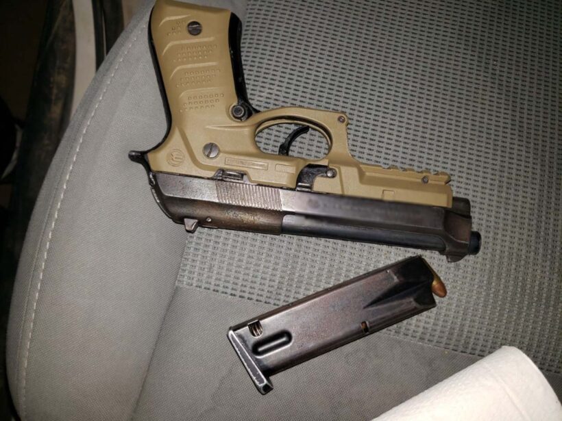 Al inspeccionar la unidad localizaron en la parte del tablero correspondiente al estéreo, un hueco donde estaba oculta un arma de fuego calibre 9mm, y un cargador abastecido con 15 cartuchos útiles, sin la documentación que permitiera su legal portación.