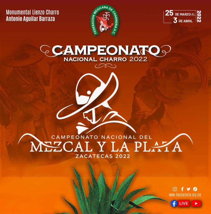 Se llegó la fecha para que la entidad sea sede del primer Campeonato Nacional del Mezcal y la Plata Zacatecas 2022, considerado uno de los mejores torneos charros del país,y que en esta ocasión reunirá a equipos de México y Estados Unidos.
