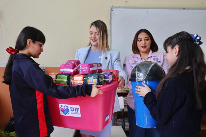 Asimismo, la presidenta Honorífica Karla Estrada, acompañada de Georgina Arce Ramírez, titular del INMUZAI, hizo entrega de un kit a la institución con material de absorción y limpieza, para que esté al alcance de las alumnas que lo requieran.