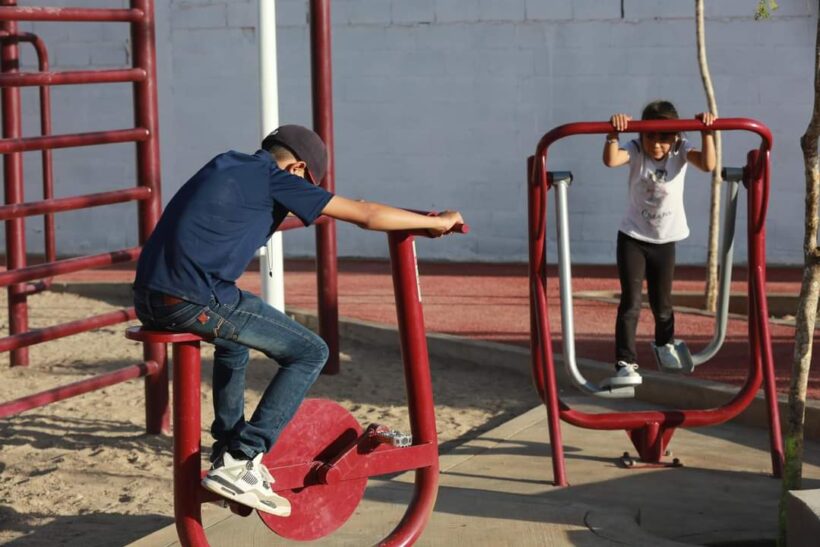 Esta nueva área consta de cancha de usos múltiples, malla ciclónica, tableros portería, trotapista, plancha de concreto, siete luminarias solares, torre infantil multijuegos, jardineras con bancas, botes de basura, gimnasio equipado con bicicleta estática, ejercitador para piernas y espalda, barras paralelas, caminadora individual y módulo de calistenia.