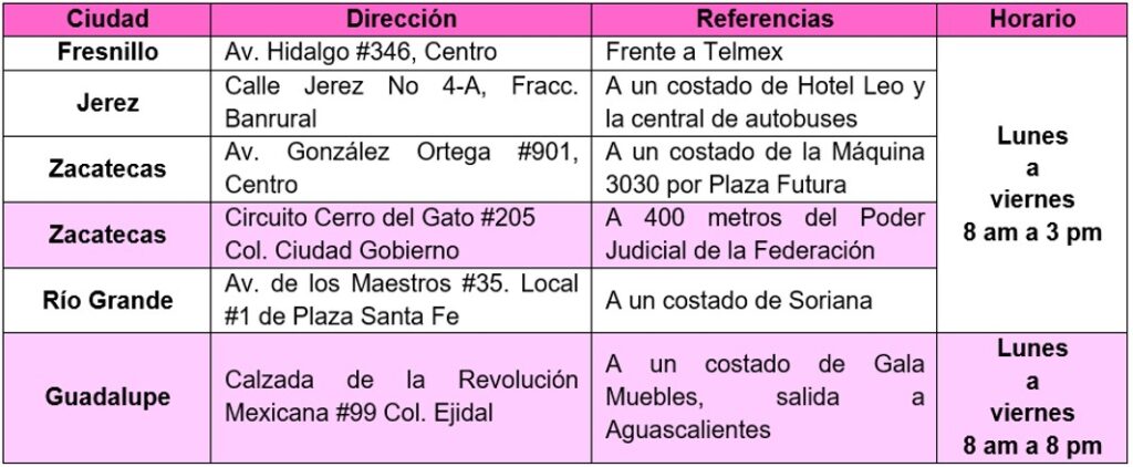 También puede consultar la información vía internet en las páginas https://ubicatumodulo.ine.mx/y https://www.ine.mx/credencial/además de las redes sociales Facebook INE Zacatecas y Twitter @IneZacatecas.