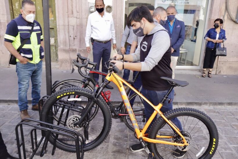 Los racks fueron colocados en las avenidas Hidalgo y Tacuba, en Zacatecas, así como en la presidencia municipal de Guadalupe y en el jardín Juárez, con lo cual, los ciclistas ahora cuentan con espacios seguro para colocar las bicicletas; además, activan la circulación de estas zonas, de acuerdo al Código Territorial y Urbano.