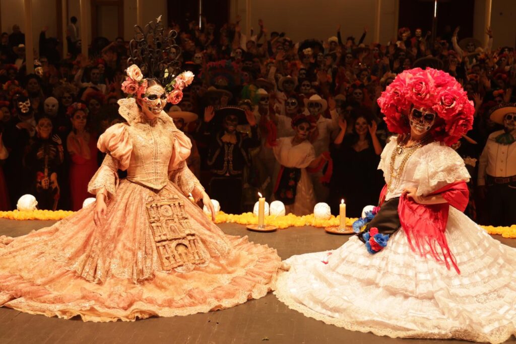 La convocatoria mostró una respuesta extraordinaria, con la participación de alrededor de 500 personas que transformaron el teatro en un vibrante mosaico de catrinas, catrines, calaveras mexicanas, luchadores, danzantes, mariachis, charros y personajes del folclor nacional.