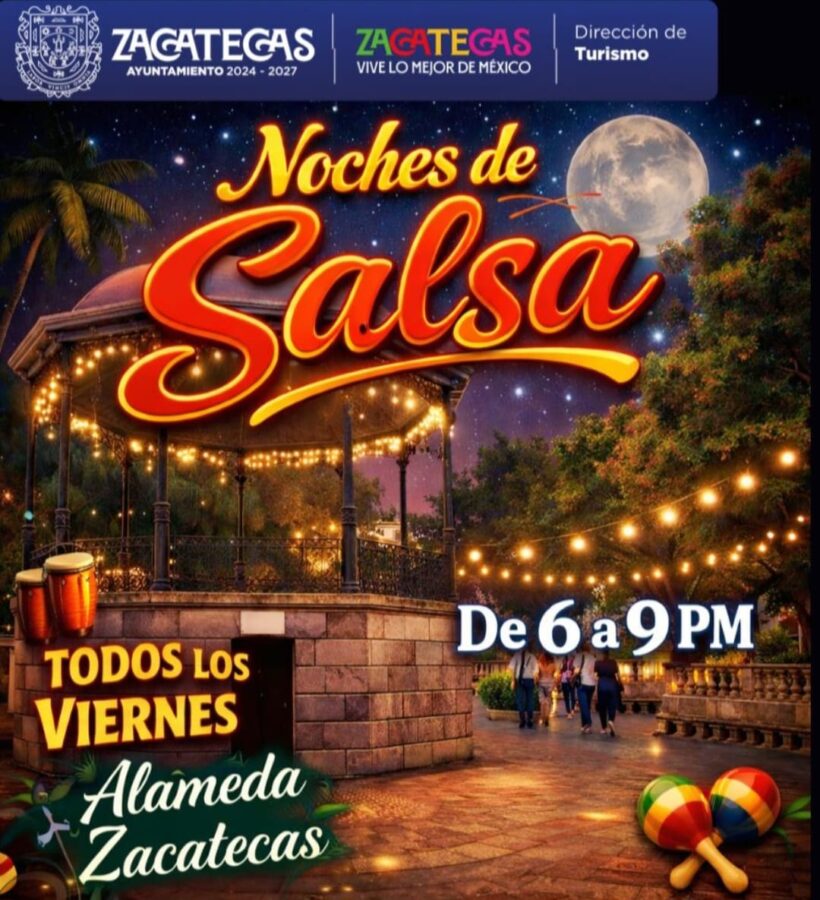 Además de las Noches de Salsa, el programa contempla una serie de eventos distribuidos a lo largo de la semana. Desde los miércoles, con el ya tradicional “Miércoles de Danzón” en coordinación con la Dirección de Cultura, hasta conciertos de rock los sábados, las actividades se desarrollan en espacios emblemáticos como la Plazuela Goitia, el Mercado González Ortega y la propia Alameda.