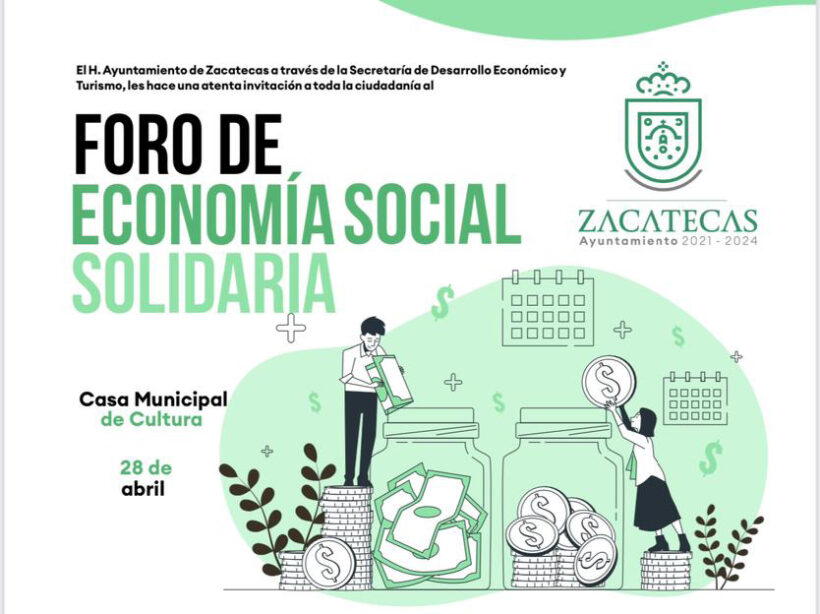 El Ayuntamiento de Zacatecas, a través de la Secretaría de Desarrollo Económico y Turismo, invita al primer Foro de Economía Social Solidaria que se realizará este 28 de abril en Casa Municipal de Cultura de Zacatecas.