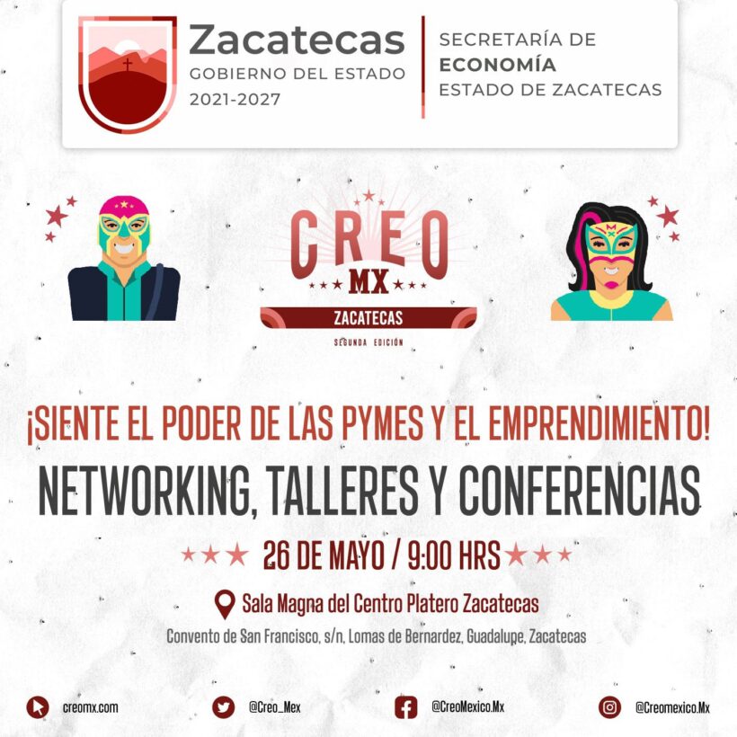 Como parte de la estrategia para el impulso de las y los emprendedores locales, el Gobierno de Zacatecas, a través de la Secretaría de Economía, invita a las y los jóvenes a participar en la segunda edición de Creo MX, un espacio en donde, a lo largo de un día, podrán recibir mentorías y capacitaciones.