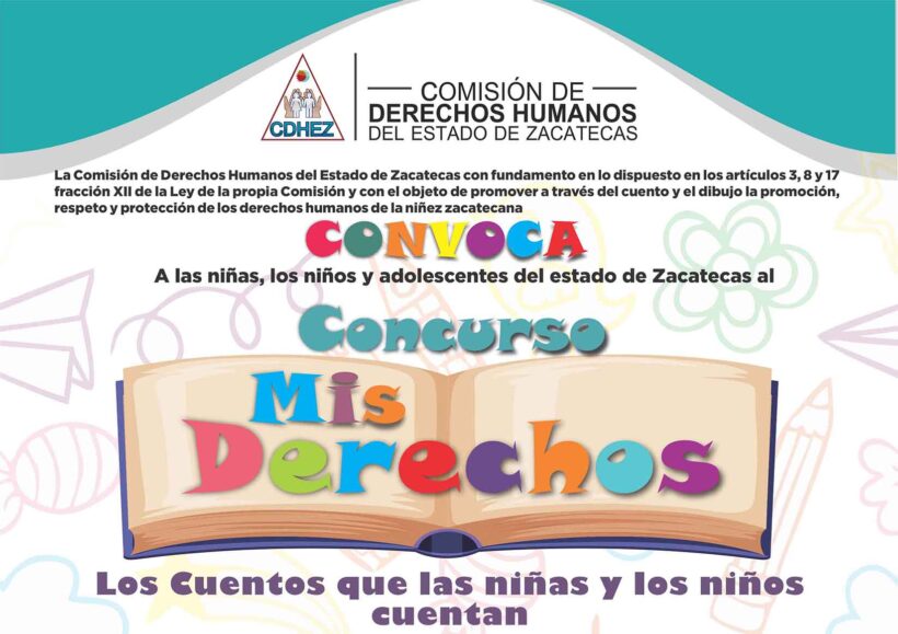 La Comisión de Derechos Humanos del Estado de Zacatecas (CDHEZ) convoca a las niñas, los niños y adolescentes a participar en el concurso denominado “Mis derechos. Los cuentos que las niñas y niños cuentan”, en donde podrán narren sus experiencias en el ejercicio de sus derechos.