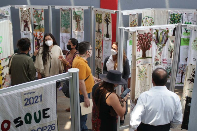 Gracias a esta adhesión del gobierno de la transformación para abrir espacios de participación local en pro del medio ambiente, las y los visitantes al Zigzag podrán observar en la Sala Acción/Reacción el bosque textil de la esperanza, que fue concebido como una acción de protesta en el marco de la Conferencia Climática, en Glasgow, Suecia, en el año 2021, bordado por personas de México, Argentina, Chile, Suecia, Alemania, Inglaterra, Irlanda, Francia y Grecia.