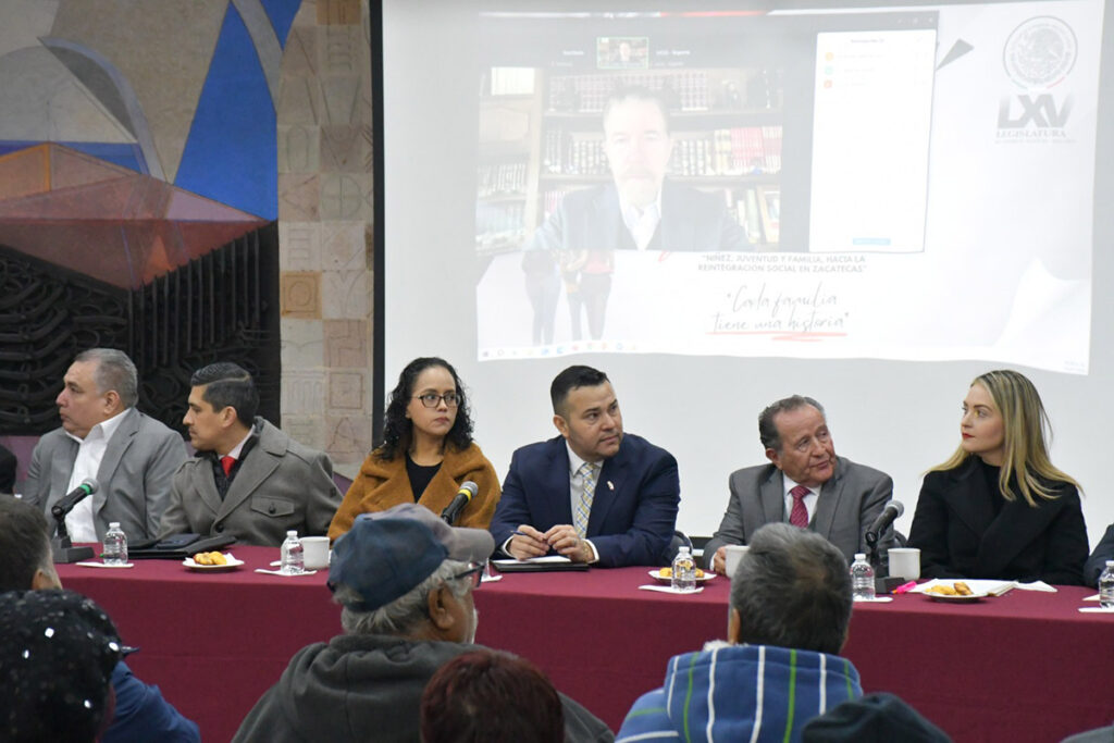 El presídium estuvo integrado por el diputado Roberto Lamas Alvarado, presidente de la Comisión Legislativa de Derechos de la Niñez, Adolescencia, Juventud y Familia, las diputadas Karla Guadalupe Estrada García y Dayanne Cruz Hernández, los legisladores Jesús Eduardo Badillo Méndez, Eleuterio Ramos Leal y Carlos Peña Badillo, el Magistrado Virgilio Rivera Delgadillo, el Procurador de Protección a Niñas, Niños, Adolescentes y Familia del SEDIF Álvaro García Hernández, Avelino Meza secretario general de Fuerza Migrante, Mtra. María Antonia González Hernández de la Visitaduría General para atención a migrantes en la CDHEZ, y Osvaldo Contreras Vázquez.
