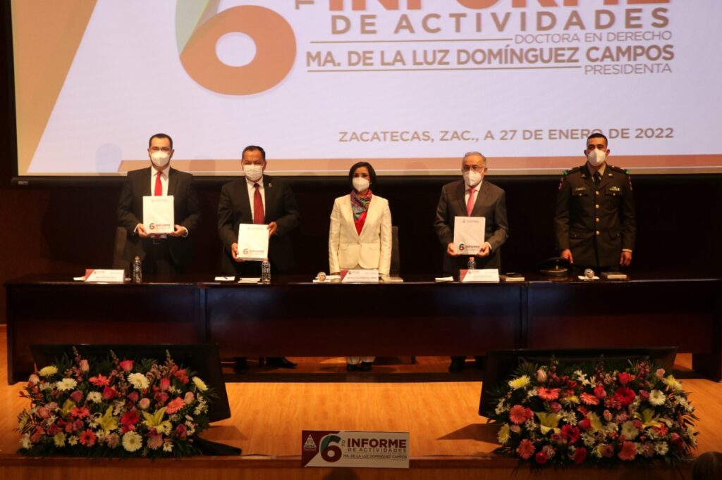 La Dra. en Derecho Ma. de la Luz Domínguez Campos, Presidenta de la Comisión de Derechos Humanos del Estado de Zacatecas (CDHEZ) rindió su Sexto Informe de Actividades correspondientes al periodo 2021, en el marco del 29 aniversario de la creación del Organismo Defensor de Derechos Humanos en la entidad.