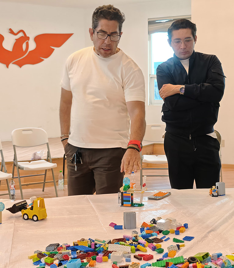 Durante las sesiones, las y los participantes exploraron nuevas formas de dialogar, reflexionar y resolver desafíos a través de ejercicios simbólicos de construcción. Cada pieza utilizada representó una idea, una propuesta o una visión compartida sobre el trabajo político y social que Movimiento Ciudadano impulsa en Zacatecas.