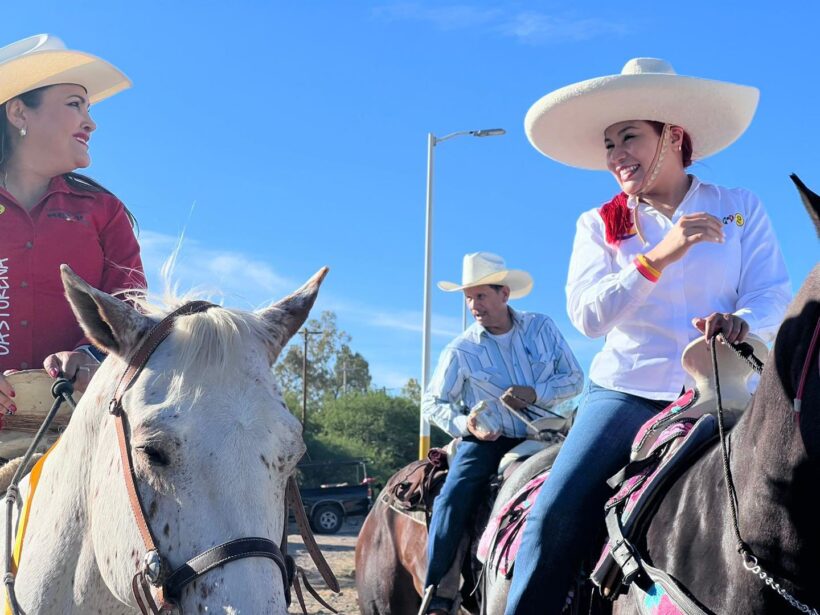 Un evento de alegría, aplausos, porras, para la candidata a diputada federal del distrito 1 Norma Castorena en Lobatos, Valparaíso, donde comenzaron con una cabalgata de esta comunidad acompañada de Simonita Ramos, Miguel Torres y Claudia Anaya, arribaron al escenario,
