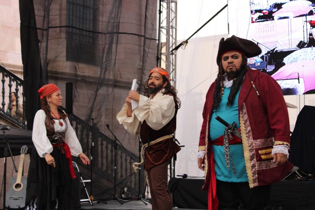 En el Foro de las Infancias, la agrupación Legión Cuentera cautivó a las familias con una propuesta escénica lúdica, mientras que en el Teatro Ramón López Velarde, la compañía Ni pies ni cabeza presentó Awkard Latino, una obra contemporánea que generó reflexión en el público.