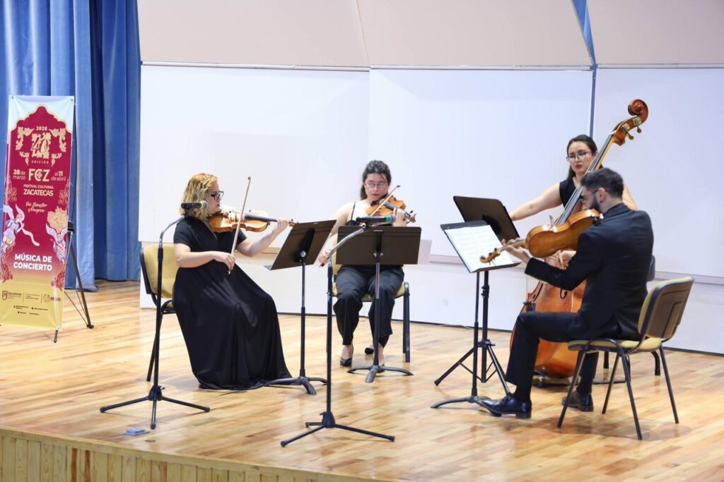 Otros espacios emblemáticos de la ciudad también fueron escenario de experiencias memorables. El Museo de Arte Abstracto Manuel Felguérez albergó la presentación del Cuarteto Romanza, mientras que la Nave del Ex Convento de San Francisco, del Museo Rafael Coronel, recibió al Ensamble Mictlán, con el recital Metrópolis. Por su parte, el Ensamble de Cámara Zacatecano ofreció un concierto destacado en el Templo de Nuestra Señora de Fátima, reafirmando la calidad musical del talento local.