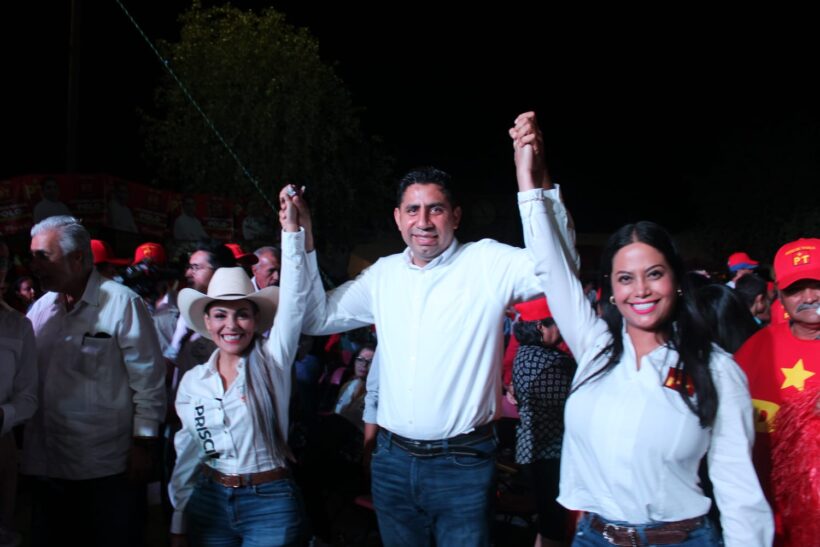 Acompañados del comisionado político nacional del Partido del Trabajo (PT) en Zacatecas, Alfredo Femat Bañuelos, y de la senadora Geovanna Bañuelos de la Torre, este lunes, los candidatos Antonio “Polo” Rocha, Ana Luisa del Muro García y Priscila Benítez Sánchez, cerraron campaña en el municipio de Trancoso.