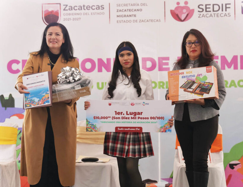 Con el propósito de generar un medio de comunicación y expresión para la niñez zacatecana a nivel binacional, en el que destacaran los derechos humanos, el Gobierno de Zacatecas llevó a cabo la premiación del Concurso “Dibujando una Historia de Migración 2024” que realiza través del Sistema Estatal para el Desarrollo Integral de la Familia (SEDIF) y la Secretaría del Zacatecano Migrante (Sezami).