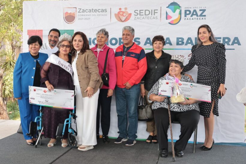 Al término de los Honores a la Bandera, la Presidenta Honorífica del Sistema Estatal para el Desarrollo Integral de la Familia (SEDIF), Sara Hernández de Monreal, hizo entrega de los premios y felicitó a las ganadoras por ser mujeres valientes de edad.