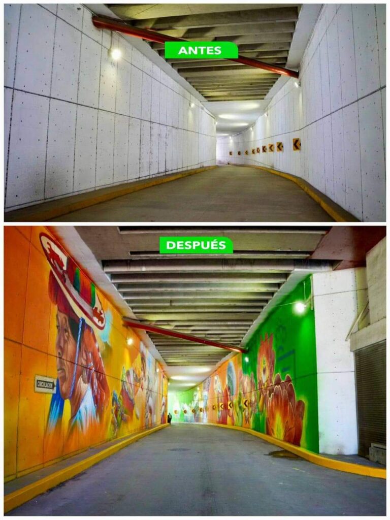 Manuel González, cronista municipal, explicó que el mural ubicado en el túnel de Plaza Bicentenario representa dos elementos que constituyen un homenaje al patrimonio cultural y natural del municipio.