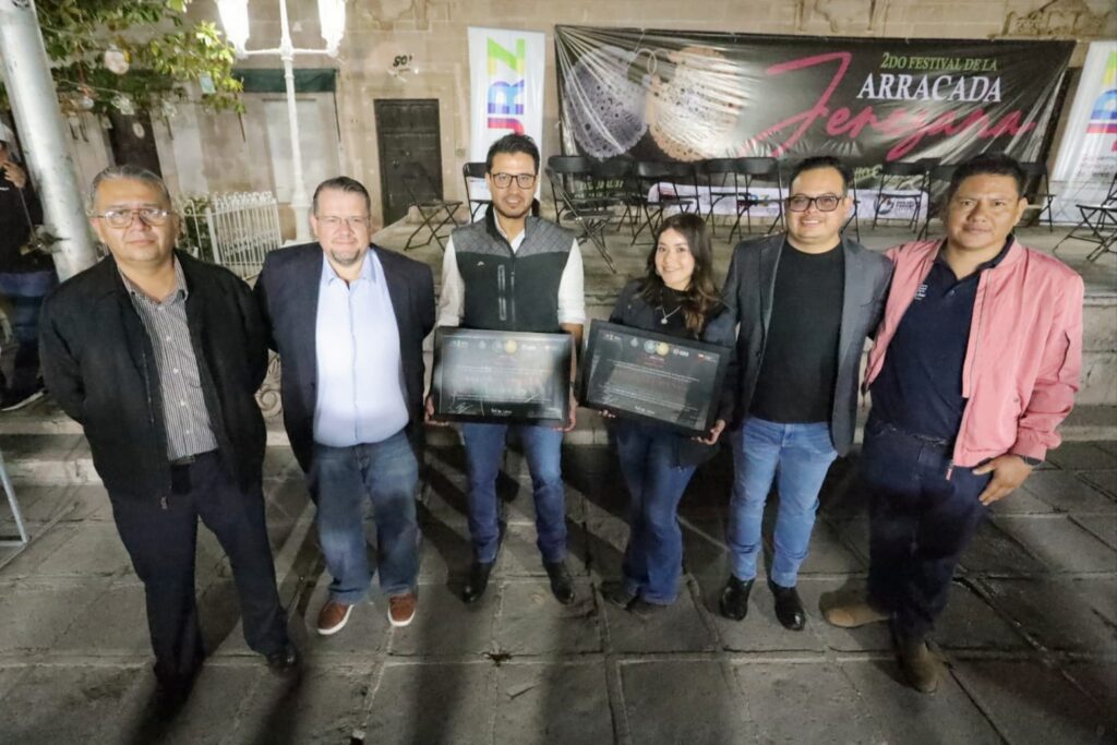 Posteriormente, se llevó a cabo la premiación del concurso de la arracada, reconociendo el talento y la creatividad de las y los artesanos participantes. El primer lugar fue para Hugo Juárez García, quien recibió un premio de 15 mil pesos; el segundo lugar lo obtuvo Jesús Octavio García Saavedra, con un estímulo de 10 mil pesos; mientras que el tercer lugar correspondió a Inés Jaqueline Murillo Marín, acreedora a una beca en una escuela de joyería.