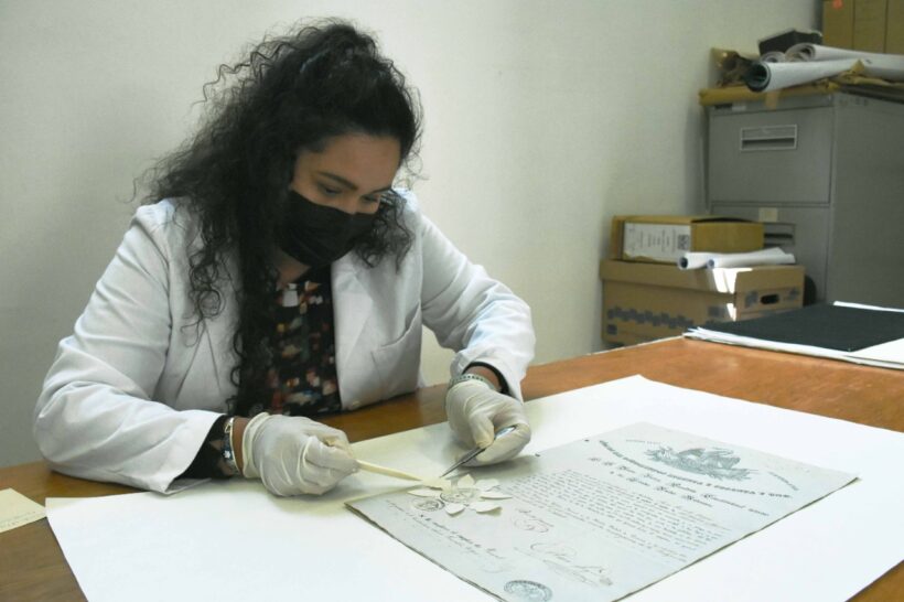 Personal de la Dirección General de Archivos implementó medidas de conservación para garantizar la salvaguarda de un documento histórico firmado por el expresidente Benito Juárez García en 1860, el cual, dado su valor testimonial, habrá de ser legado a futuras generaciones.