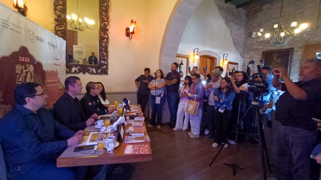 La administración estatal, presentó ante medios de comunicación de los estados de Aguascalientes y San Luis Potosí la cuadragésima edición del Festival Cultural Zacatecas 2026, que se realizará del 28 de marzo al 11 de abril, con una programación artística y cultural que contempla más de 400 actividades.