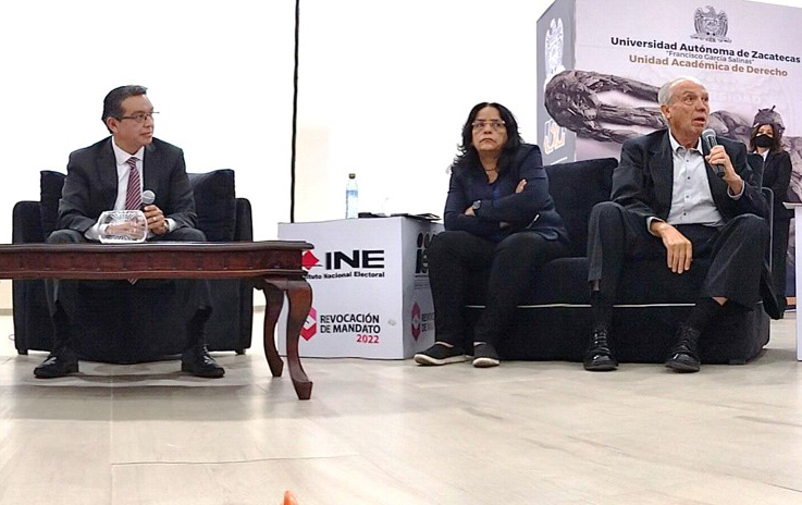 Con la participación como panelistas de Leticia Torres Villa, Ma. De la Luz Domínguez Campos, Rafael Calzada Vázquez,Raymundo CárdenasHernández y la moderación de Mario Caballero Ramírez, el Instituto Nacional Electoral en Zacatecas realizó el Foro Estatal de Discusión como parte de las actividades de difusión de la Jornada de Revocación de Mandato a celebrarse el 10 de abril.