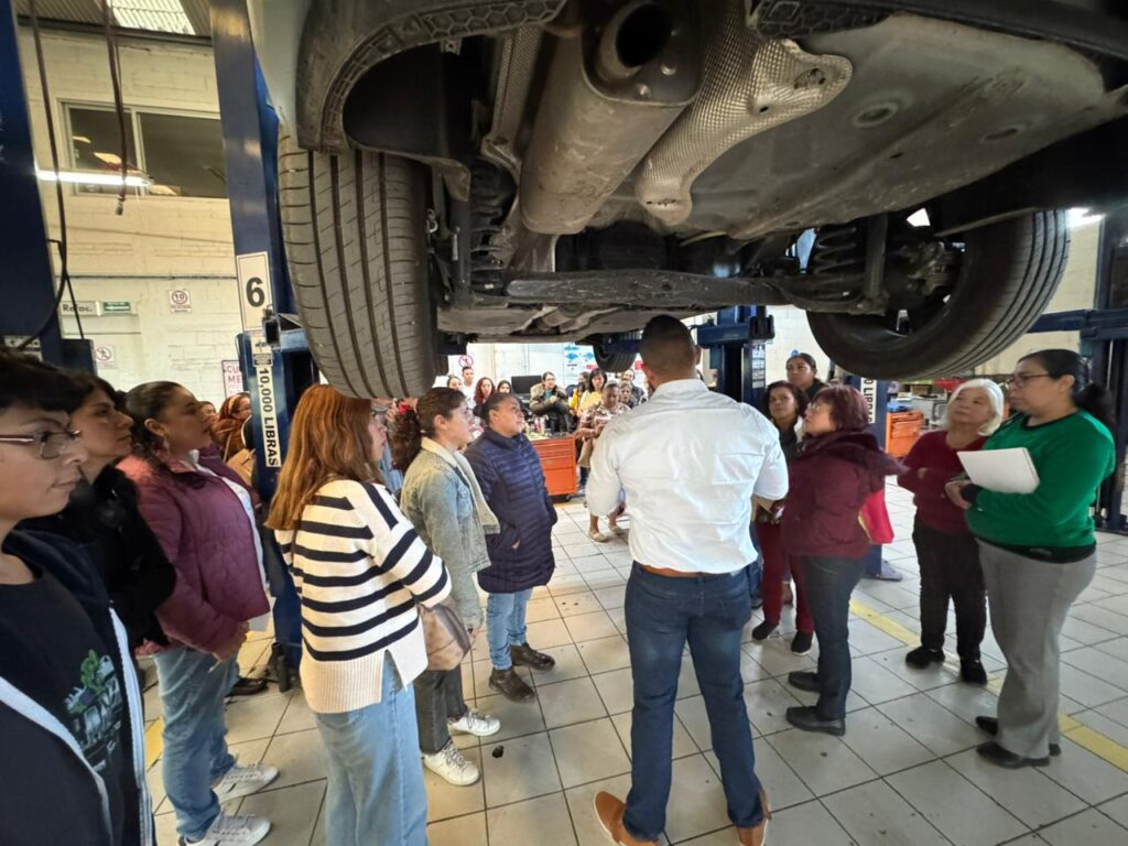 Durante las jornadas, las participantes aprendieron sobre revisión de niveles de aceite, presión de llantas, cambio de batería, señales del tablero y uso adecuado de herramientas, además de realizar prácticas sobre reemplazo de llanta y atención a emergencias viales.