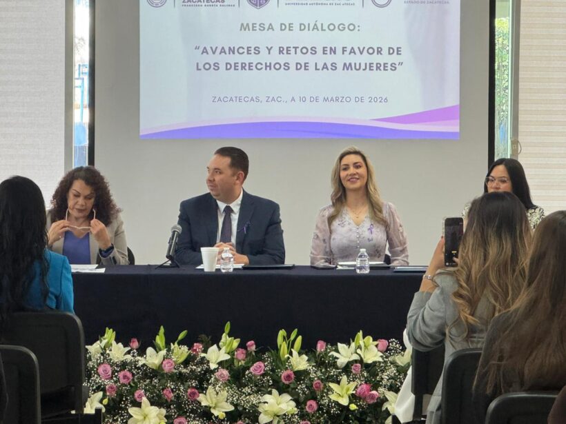 En el marco del Día Internacional de la Mujer, el Gobierno de Zacatecas, a través de la Secretaría de las Mujeres, en coordinación con la Unidad Académica de Derecho de la Universidad Autónoma de Zacatecas (UAZ), llevó a cabo la mesa de diálogo “Avances y retos en favor de los derechos de las mujeres”, con el objetivo de generar un espacio de reflexión y diálogo sobre la participación y el liderazgo de las mujeres en las instituciones públicas.