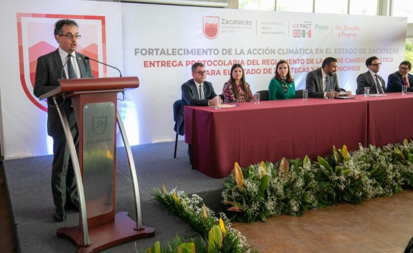 Con un reconocimiento a Zacatecas por su liderazgo en materia de medio ambiente, el Gobierno estatal ecibió del Programa México-UK PACT (Partnering for Accelerated Climate Transitions) y la organización Política y Legislación Ambiental (POLEA), el reglamento de la Ley de Cambio Climático para el Estado de Zacatecas y sus Municipios, un instrumento jurídico que establece metas concretas para hacer frente a la crisis climática mundial.