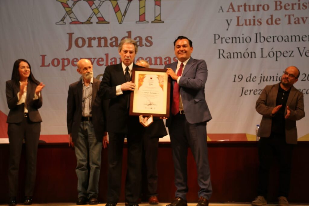“Por su lectura, por vivir y dar vida desde la combustión de sus huesos, a López Velarde”, a decir del poeta zacatecano Javier Acosta, los reconocidos exponentes de la dramaturgia mexicana Luis de Tavira y Arturo Beristáin recibieron el Premio Iberoamericano “Ramón López Velarde”, por parte del Gobierno de Zacatecas.