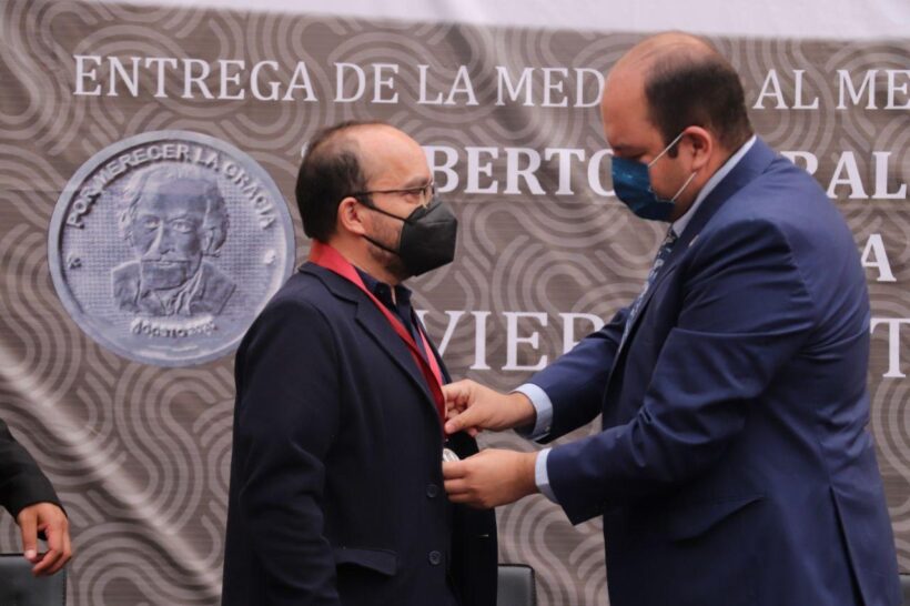 Javier Acosta Escareño, el tercero en recibir esta presea, por su legado cultural para Zacatecas”.