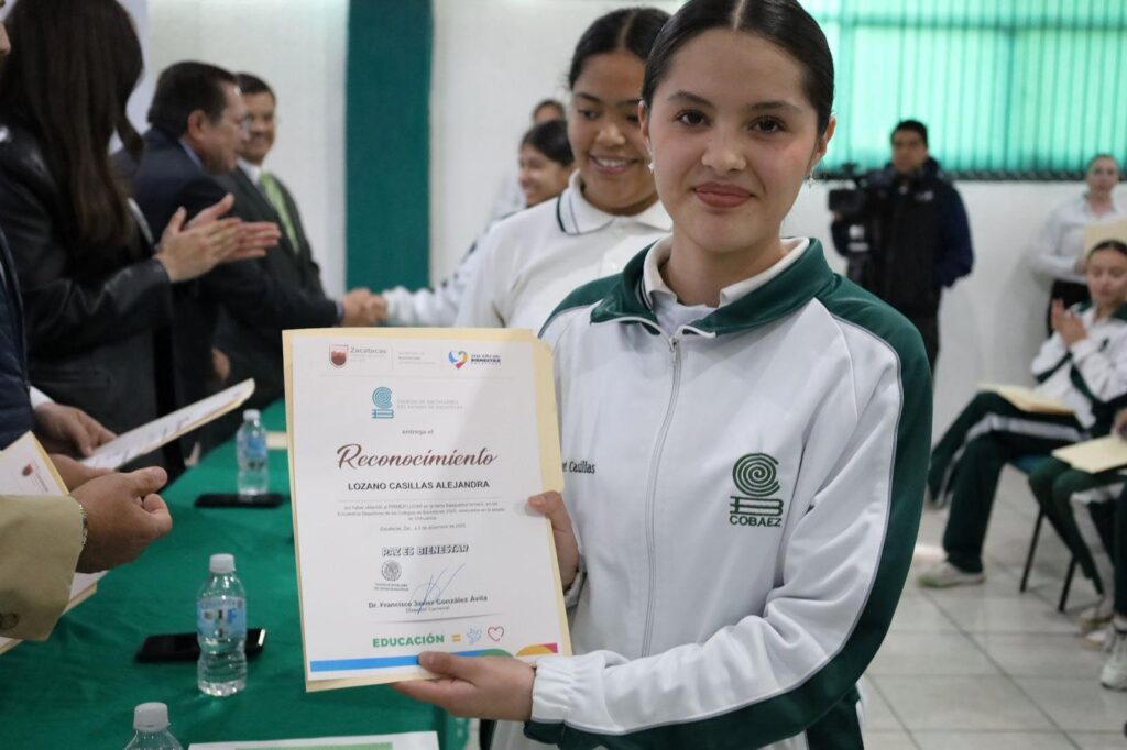 En el marco del Año del Bienestar 2025, el Colegio de Bachilleres del Estado de Zacatecas (Cobaez) reconoció a estudiantes y docentes de distintos planteles que integran el subsistema, que sobresalieron durante el primer semestre del ciclo escolar 2025-2026.