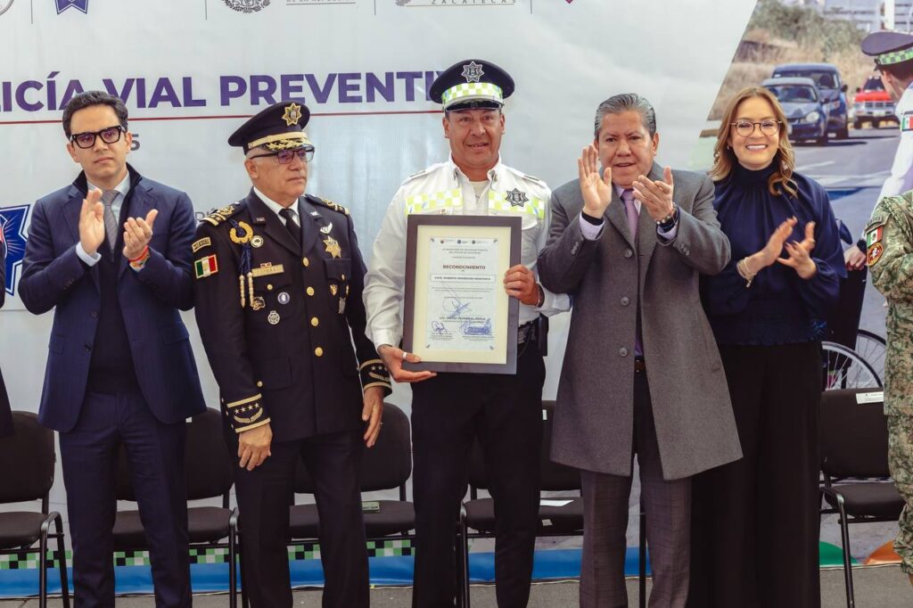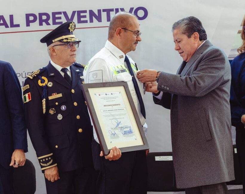 Durante el evento, efectuado en la capital zacatecana, el mandatario otorgó reconocimientos por 30 o más años de servicio a Armando Gómez Rodríguez, Juan Francisco Guerrero Vega, Roberto Rodríguez Menchaca y Luis Martín Menchaca Vela. Además, entregó nuevos uniformes al personal operativo, como parte del proceso de dignificación y fortalecimiento de la corporación.