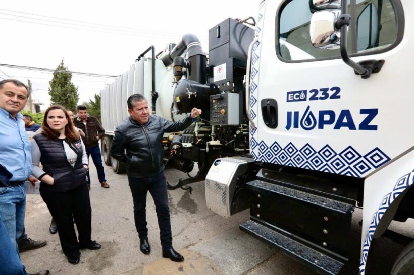 Como parte de estas acciones, con inversión de casi 16 millones de pesos, el Gobernador entregó a personal de la Jiapaz un equipo hidroneumático de desazolve, marca Aquatech, cuyo fin será reforzar las labores de mantenimiento preventivo y correctivo en la red de alcantarillado sanitario de Zacatecas, Guadalupe, Morelos y Vetagrande.