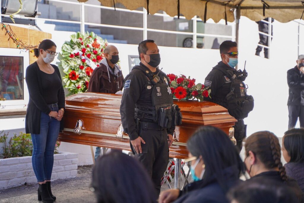 Trabajadores del municipio, elementos de la Policía Municipal, familiares y amigos dieron el último adiós a la servidora en las instalaciones de la Comandancia de Seguridad, acompañados de música de mariachi.