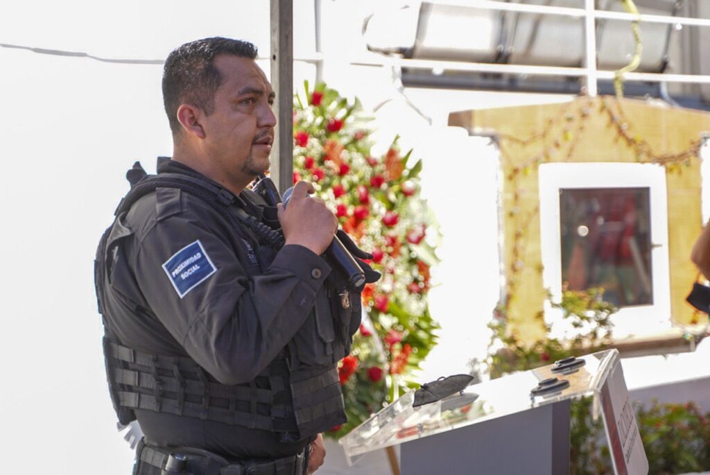 Posteriormente, las y los asistentes brindaron un minuto de aplausos, mientras que las y los elementos hicieron sonar las sirenas de sus patrullas en señal de respeto a la vida y servicio de Gilda.