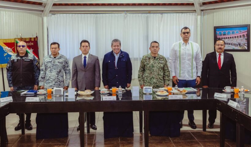 Este jueves, en la sede de la Decimoprimera Zona Militar, el Gobernador David Monreal Ávila encabezó la sesión de la Mesa Estatal de Construcción de Paz y Seguridad, donde reafirmó el compromiso con la pacificación del estado, que ha sido posible por el trabajo conjunto y permanente entre quienes integran este grupo de coordinación, y que está encaminado a lograr la tranquilidad y bienestar de las familias de Zacatecas.