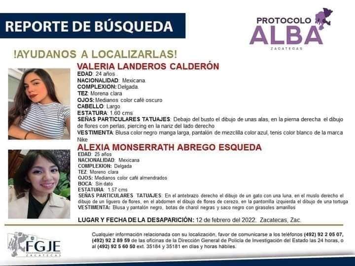 Valeria es oriunda de la cabecera del municipio mejor conocido como Nieves, al igual que lo eran Alexia y los tres jóvenes que desaparecieron junto con ella, según confirmaron autoridades municipales, tras permanecer en contacto con autoridades de la Fiscalía General de Justicia del Estado (FGJE).