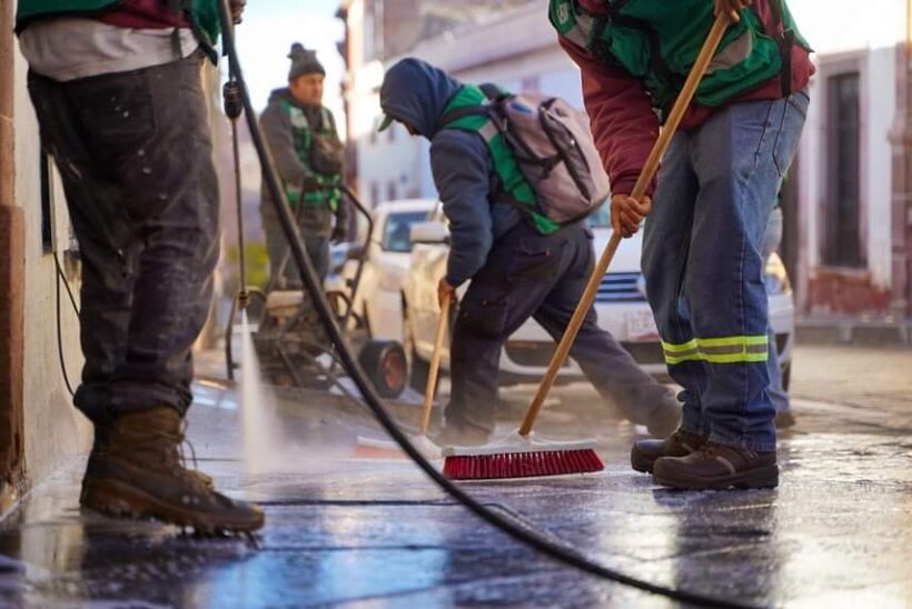 El Ayuntamiento de Zacatecas realizó una jornada de limpieza en las inmediaciones de Santo Domingo en el Centro Histórico para garantizar una ciudad reluciente y con una óptima imagen urbana.