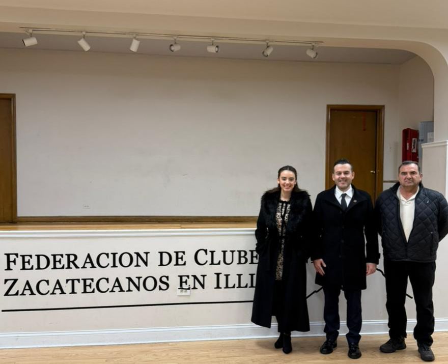 El diputado federal Ulises Mejía Haro sostuvo encuentros con representantes de tres federaciones de zacatecanos radicados en el estado de Illinois, Estados Unidos: Jaime Polanco, presidente de la Federación Unidos por Zacatecas; Toño Ávila, de Zacatecas sin Fronteras; y Alondra Hernández, de la Federación de Clubes Unidos Zacatecanos.